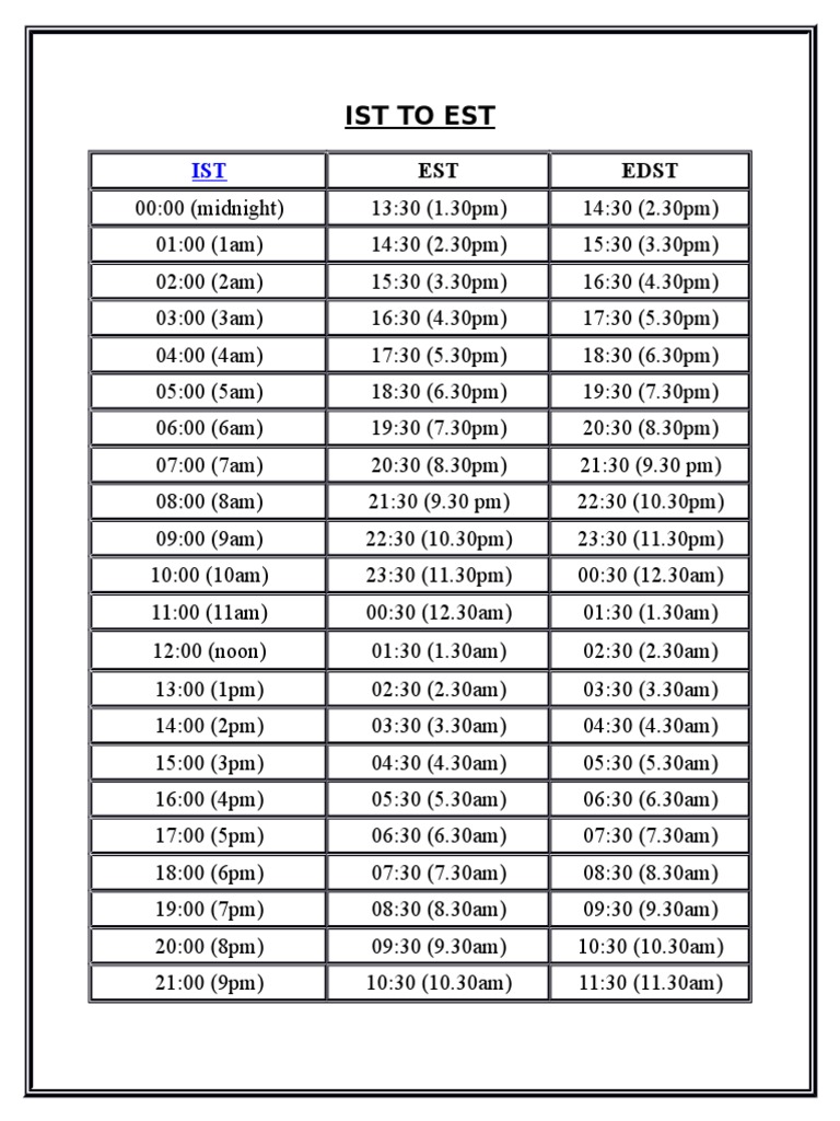 Ist To Est - Convert est (eastern standard time) to ist (indian standard time) and find the best time to schedule a meeting across time zones.