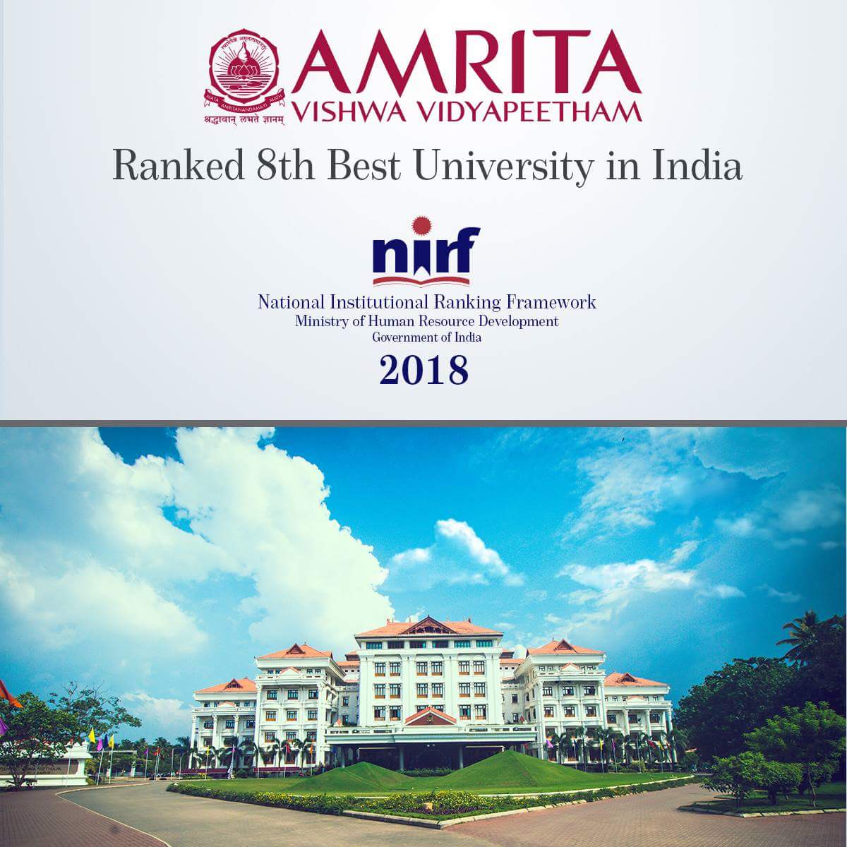 Amrita Vishwa Vidyapeetham University Ranking In India Amrita Vishwa Vidyapeetham University Ranking In India - The university has many research projects under progress.