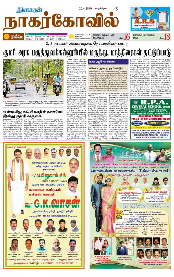 Kanyakumari Nagarcoil Supplement 01 01 70 Newspaper In Tamil By Kal Publications Read On Mobile Tablets - Check the latest kanyakumari news headlines and updates in tamil featuring politics, business, weather, crime, entertainment, art, culture and much more at oneindia tamil.