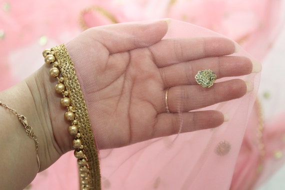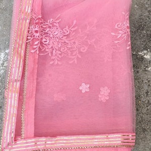 Pink Net Dupatta With Golden Border Pink Net Dupatta With Golden Border / It can be dyed as per choice.