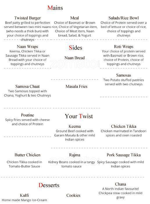 Twisted Indian Wraps Menu